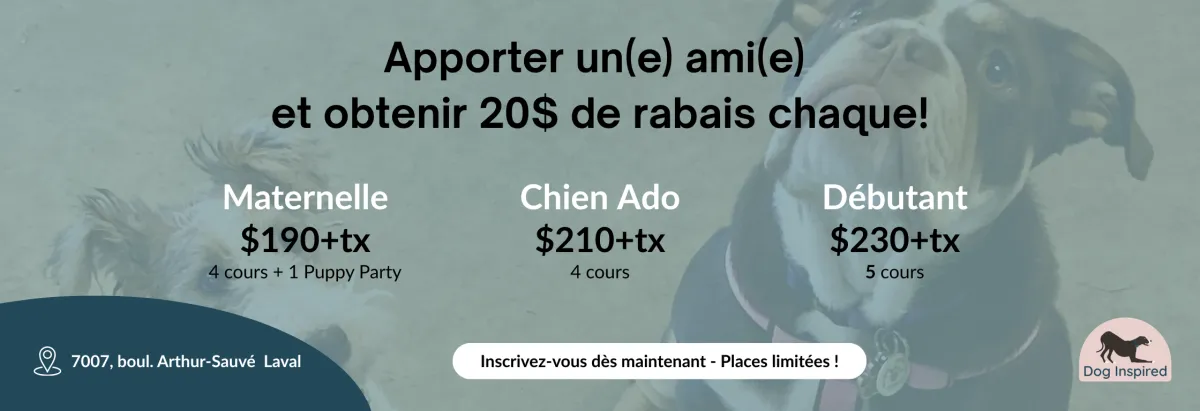 Pour la sécurité de tous les participants et du personnel, notre entraîneur se réserve le droit de refuser un chien agressif envers les chiens ou les humains.